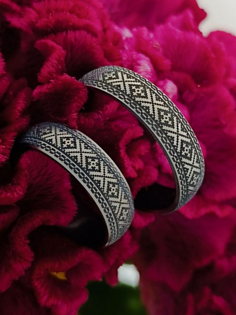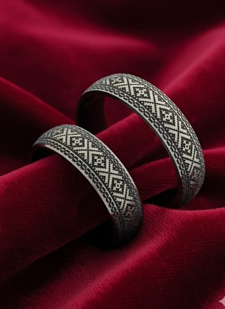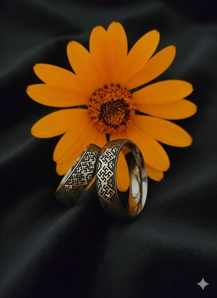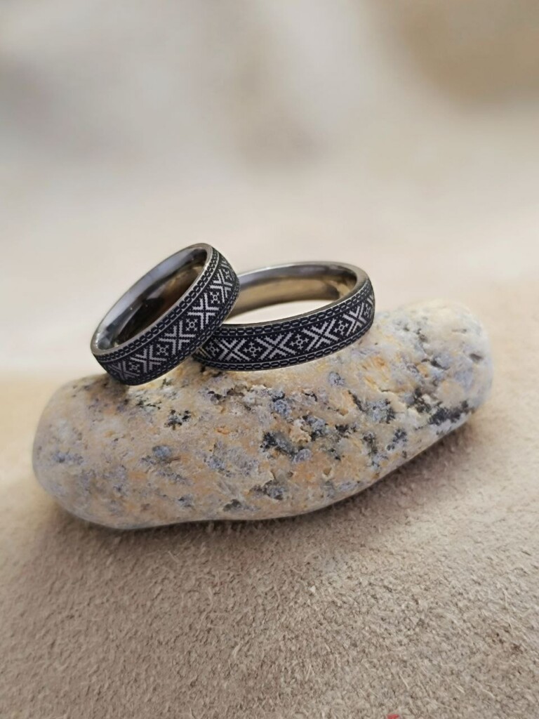 Галерея На цій сторінці ви можете переглянути фотографії титанових кілець з наших минулих замовлень. Квітка Папороті Мені подобається, хочу замовити Хугін та Мунін Мені подобається, хочу замовити Вічність Мені подобається, хочу замовити Квітка Папороті Мені подобається, хочу замовити ОрепейКолоски Вишиванка наддніпрянсська Мені подобається, хочу замовити Тесла (реверс)Беерегиня