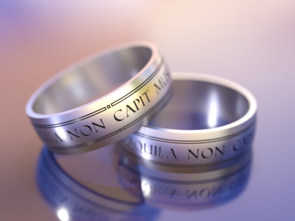 Титанове кільце з латинським виразом “Lupus non timet canem latrantem”