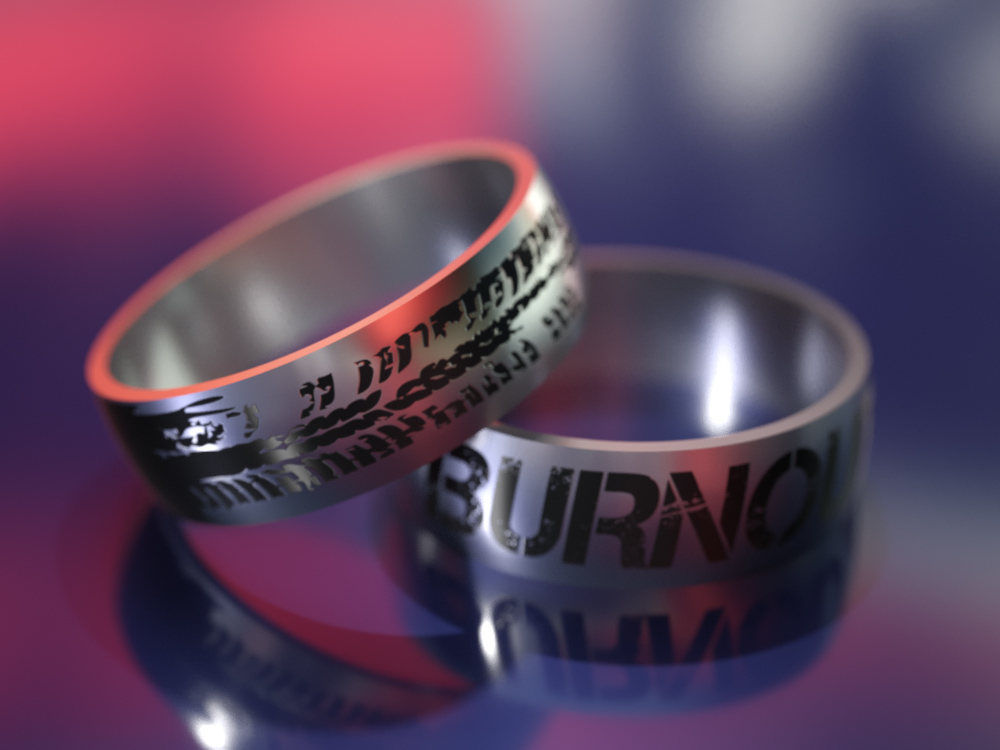 Кільце з титану зі словом Burnout і слідом від протектора