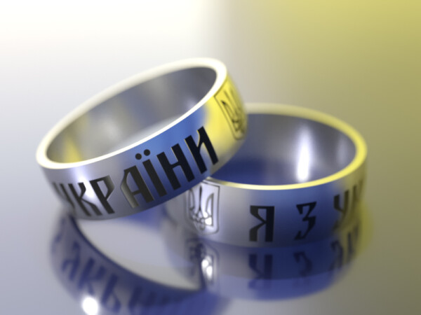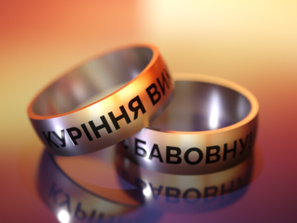 Титанове кільце з орнаментом із символу великого контрнаступу сил ЗСУ у вересні 2022 року – білих хрестів на тлі чорного квадрата.